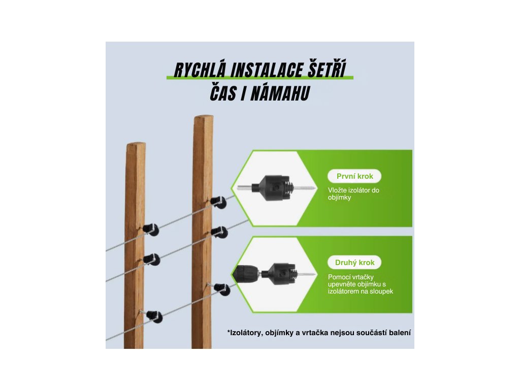 Dodává se na plastové cívce z ABS, která usnadňuje odvíjení a navíjení drátu. Kompatibilita se šroubovacími izolátory umožňuje rychlou instalaci bez složitých postupů.