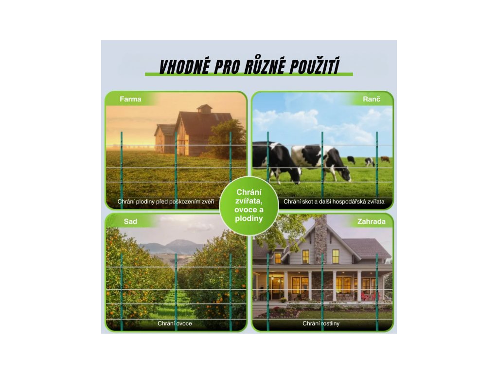Tento elektrický drát je vhodný pro stavbu ohradníků pro koně, psy, víceřadé oplocení i přenosné výběhy pro hospodářská zvířata. Uplatní se na pastvinách, farmách, zahradách i sadech, kde spolehlivě chrání proti úniku zvířat i proti pronikání divoké zvěře.