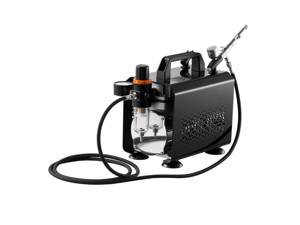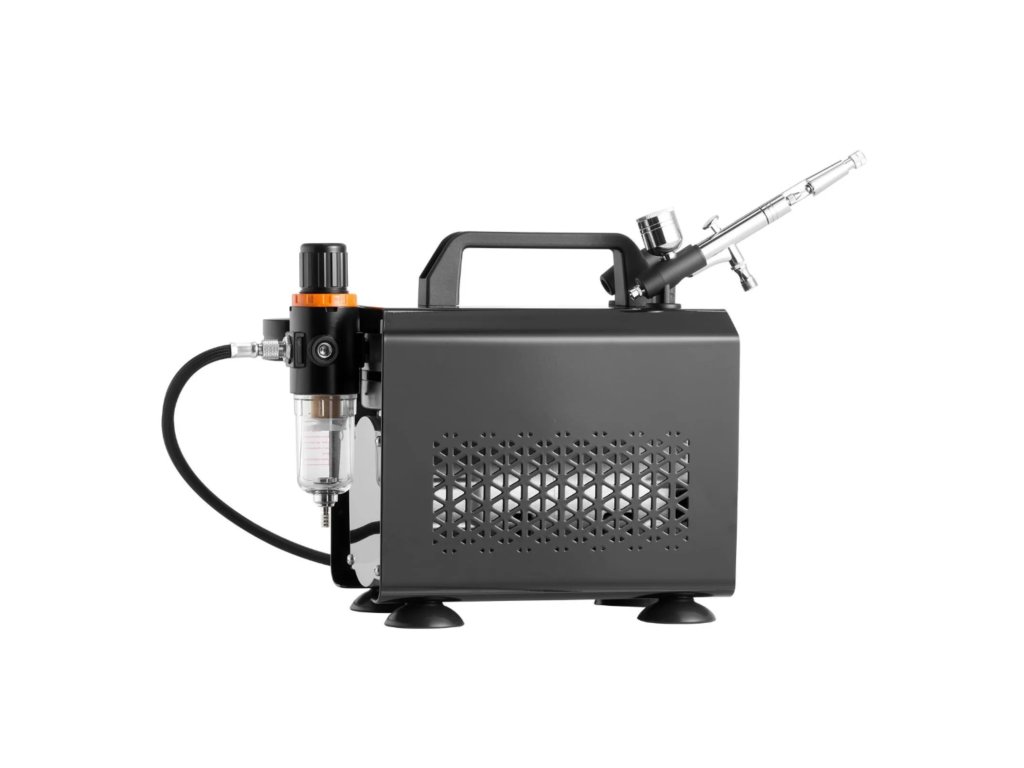 Kompletní airbrush sada s kompresorem a jednou Dual Action pistolí je vhodná pro detailní i plošnou práci. Obsahuje vyměnitelné trysky 0,2 / 0,3 / 0,5 mm pro přesné nanášení barev při modelářství, malbě, dekorování i kreativní tvorbě. Díky tichému provozu a jednoduchému ovládání je vhodná i pro začátečníky.