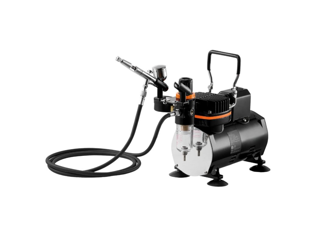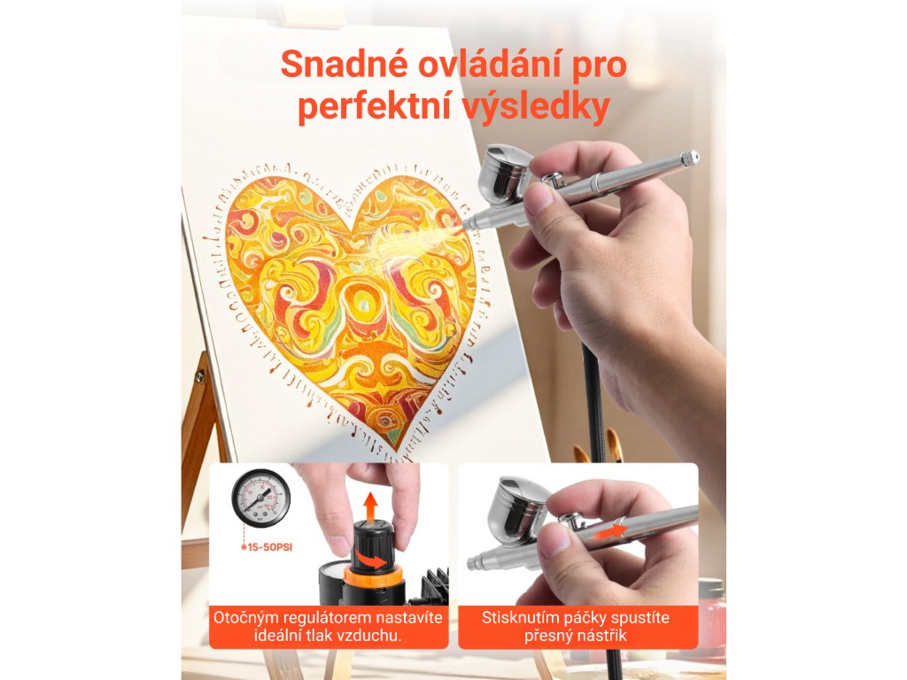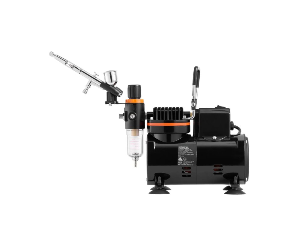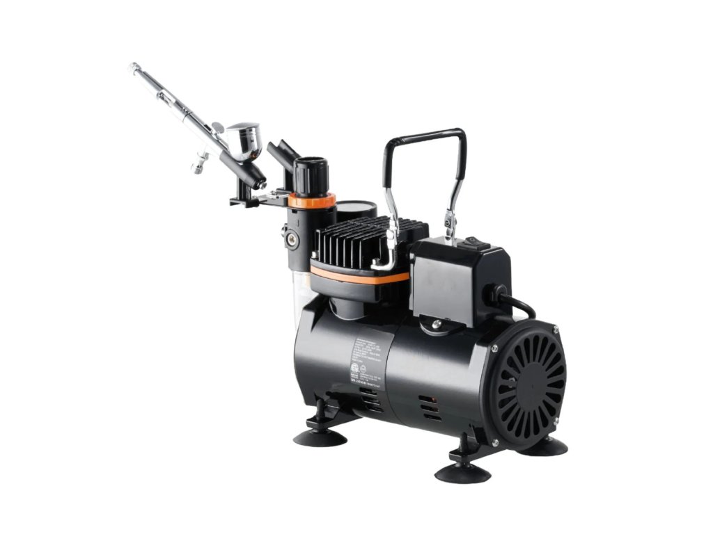 Kompletní airbrush sada s tichým kompresorem, Dual Action pistolí a tryskami 0,2 / 0,3 / 0,5 mm. Vhodná pro modelářství, dekorování, malbu i detailní práci. Nabízí přesné rozprašování, snadné ovládání a jednoduchou údržbu.