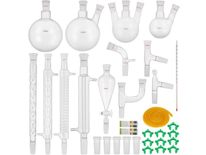 Tato 14dílná laboratorní destilační sada o objemu 1000 ml je vyrobena z borosilikátového skla 3.3, které odolává vysokým teplotám a chemikáliím. Sada obsahuje standardní 24/40...