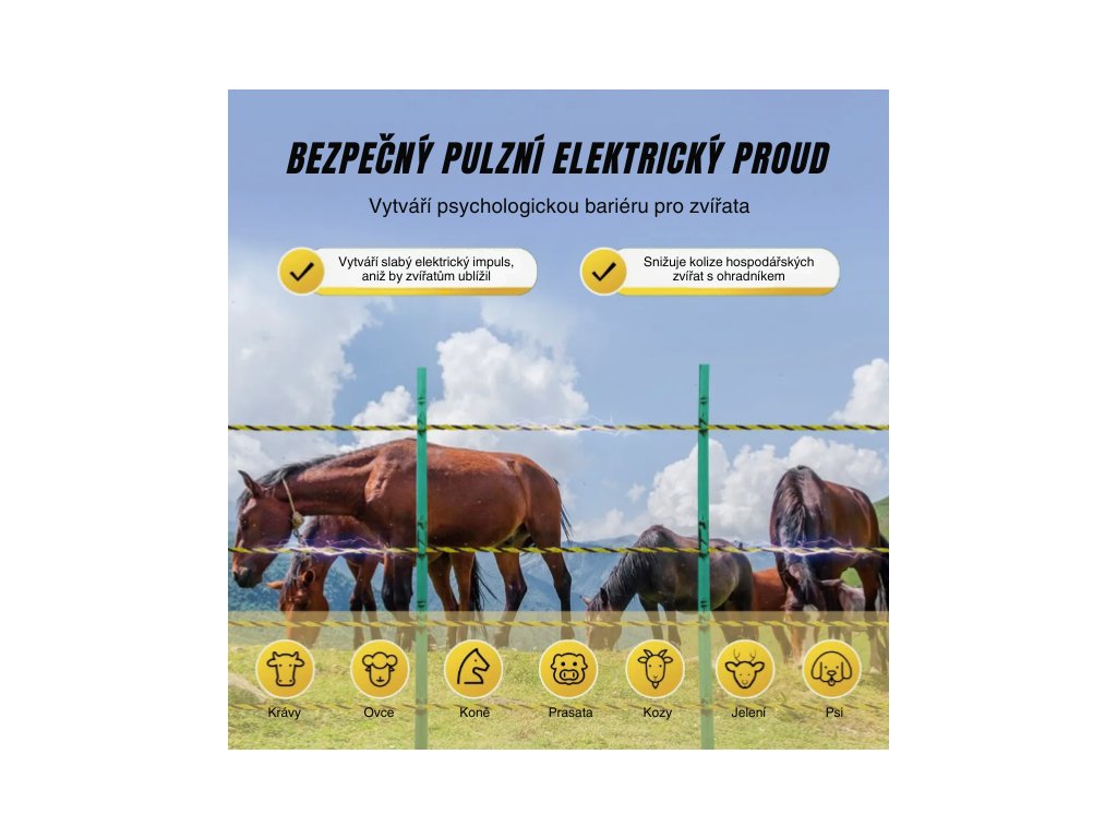 Tento elektrický vodič je vhodný pro oplocení hospodářských zvířat, jako jsou krávy, ovce či koně, a zároveň brání vstupu divoké zvěře na pozemek. Díky své konstrukci je ideální pro dočasné pastviny i rotační výběh. Díky snadné instalaci a vysoké odolnosti představuje praktické řešení pro každého chovatele.