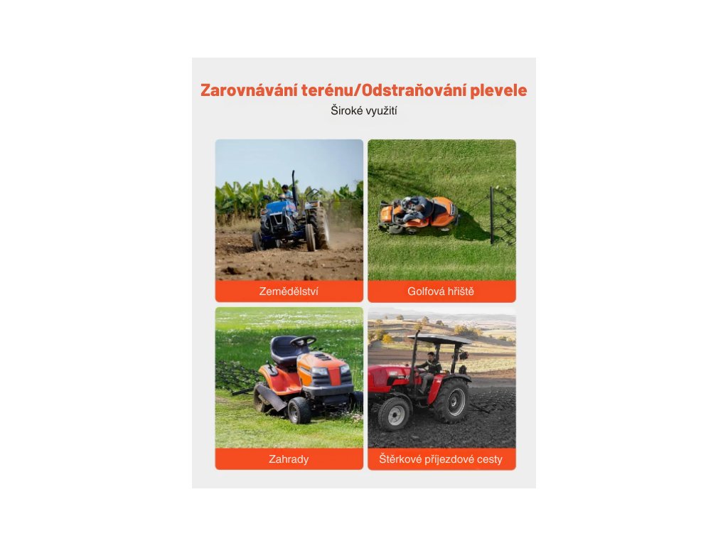 Luční brána je vhodná nejen pro zemědělské využití, ale také pro úpravu příjezdových cest, zahrad nebo travnatých ploch. Díky univerzálnímu připojení ji lze využít s různými typy vozidel a při různorodých pracích na pozemku.