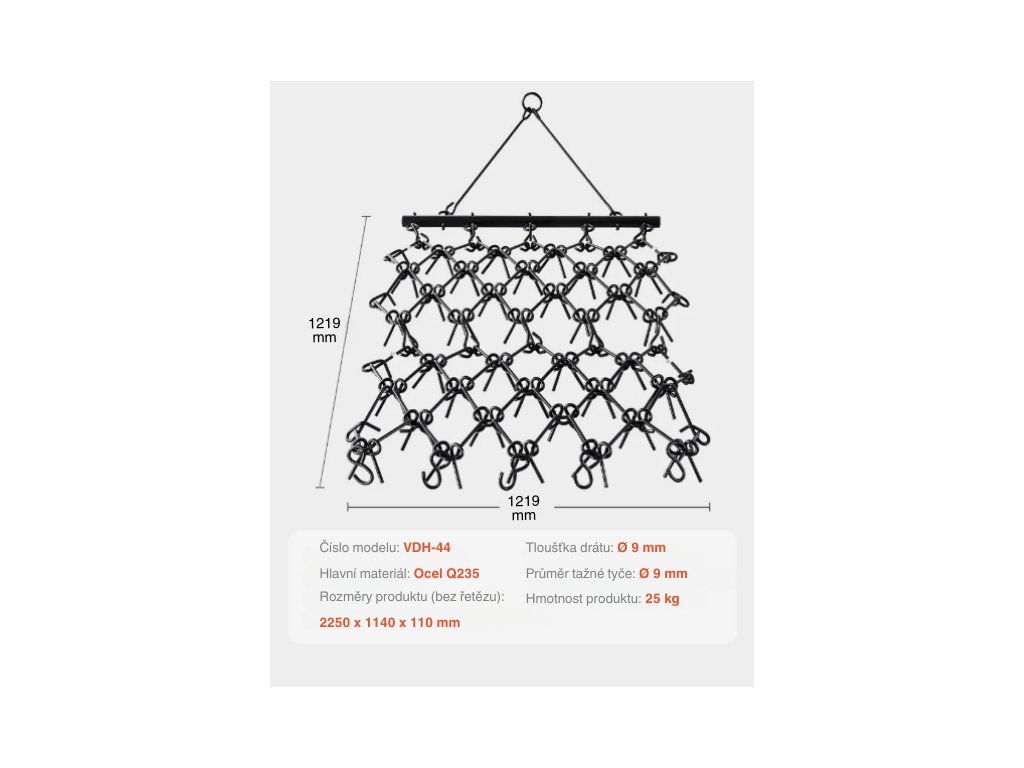 Luční brána za traktor, 69 zubů, pracovní záběr 225 cm, rozměry 225 × 114 × 11 cm