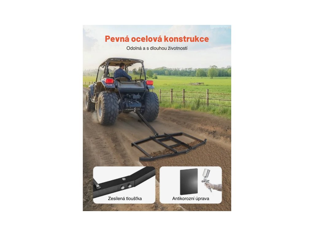 Luční brána za traktor určená k efektivnímu srovnávání a úpravě půdy. Díky pevné konstrukci a kompatibilitě s různými typy vozidel je vhodná pro široké spektrum údržbových prací na pozemcích.