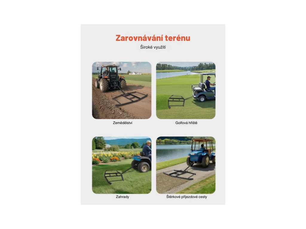 Luční brána najde uplatnění při úpravě příjezdových cest, údržbě trávníků, rovnání ploch pro sport nebo parkování, stejně jako při základní přípravě půdy před setím. Je vhodná jak pro soukromé, tak profesionální využití.