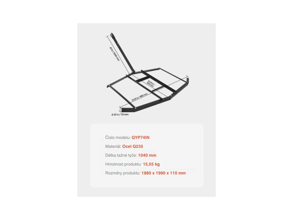 Luční brána za traktor, pracovní záběr 188 cm, rozměry 188 × 199 × 11 cm, tažná tyč 104 cm