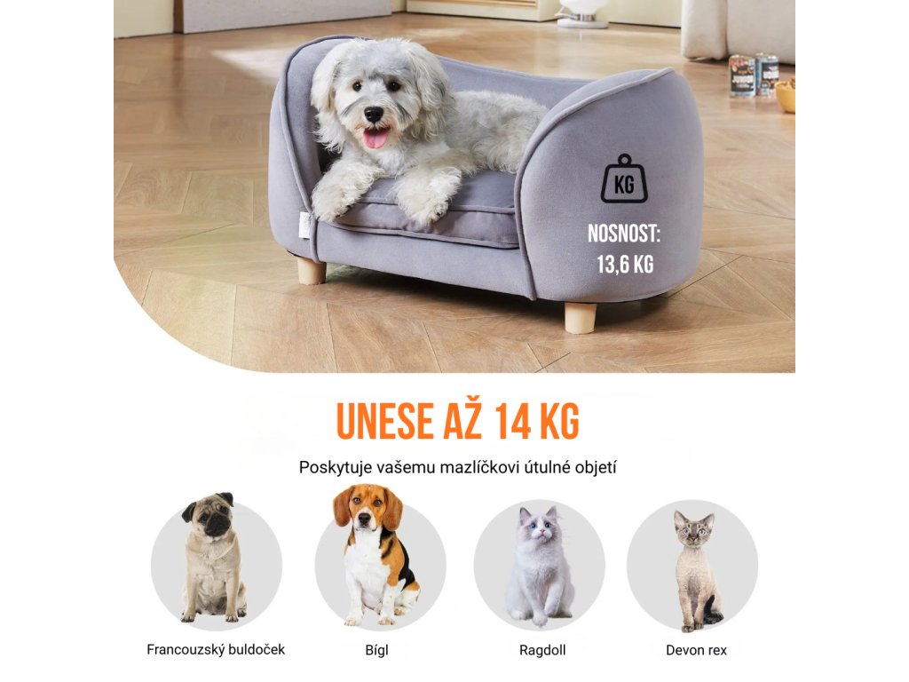 Psí pohovka o rozměrech 68,5 × 38 × 38 cm nabízí dostatek prostoru pro domácí mazlíčky různé velikosti – od krátkosrstých koček až po zlaté retrívry. Konstrukce z masivního dřeva a kvalitního plyšového materiálu zajišťuje dlouhou životnost a odolnost, což ocení zejména domácnosti s více zvířaty.