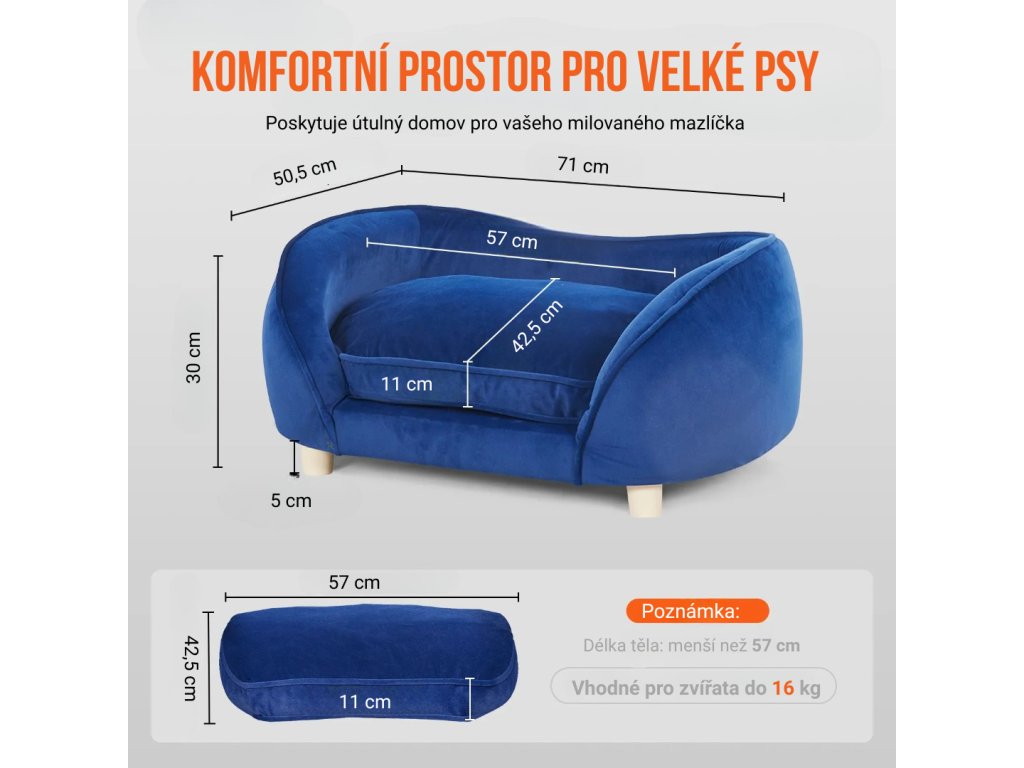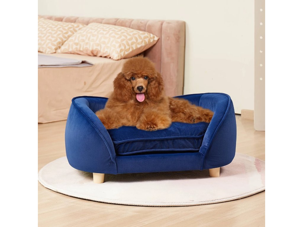 Pohovka pro domácí mazlíčky o rozměrech 71 × 50,5 × 30 cm poskytuje prostorné a pohodlné místo pro mazlíčky různých velikostí – od krátkosrstých koček až po středně velké psy. Konstrukce kombinuje odolné masivní dřevo a sametový plyšový potah, což zajišťuje dlouhou životnost a stabilitu i v domácnostech s více zvířaty.