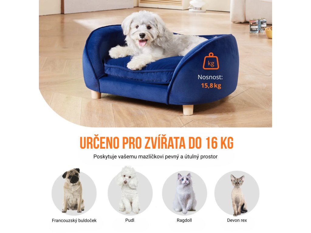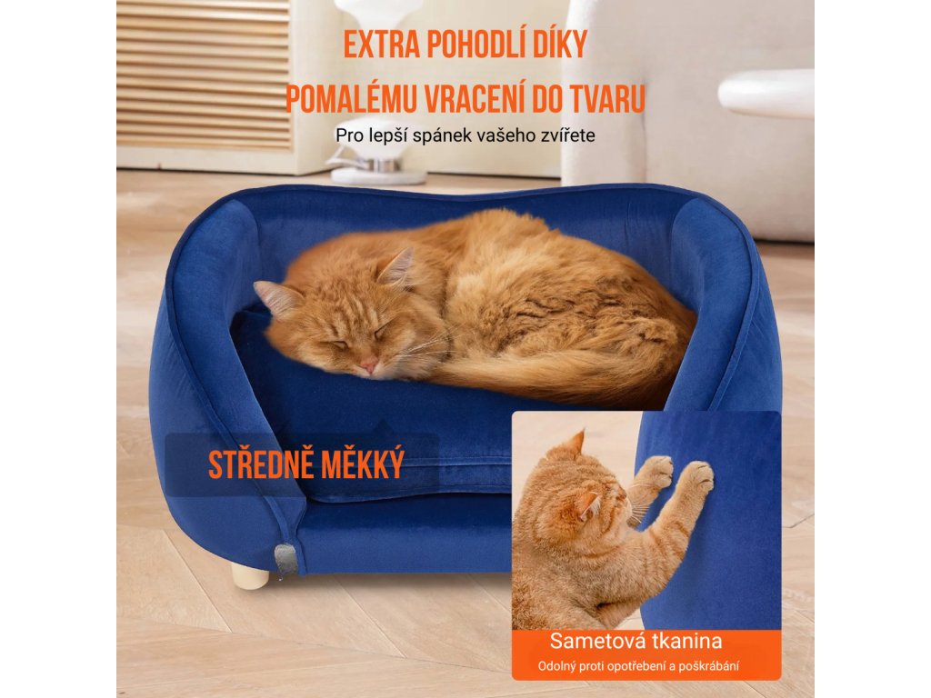 Pohovka pro domácí mazlíčky poskytuje pohodlné a bezpečné místo pro odpočinek koček a středně velkých psů. Husté pěnové polstrování s měkkým sametovým povrchem podporuje klouby a snadno se čistí. Stabilní konstrukce s 4 nohami zajišťuje bezpečí a dlouhou životnost, elegantní design ladí s každým interiérem.