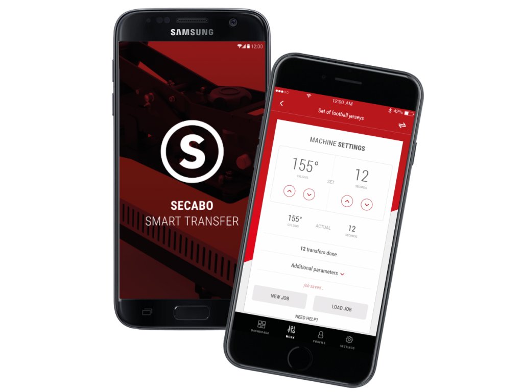Secabo TC5 SMART je vybaven bluetooth rozhraním, které umožňuje ovládat termolis pomocí aplikace Secabo Smart Transfer. Tato aplikace poskytuje přístup k rozsáhlé databázi funkcí, kde si snadno zvolíte typ textilu a přenosového materiálu, čímž okamžitě získáte správné hodnoty pro teplotu, čas a tlak. Aplikace navíc umožňuje výpočty doby zahřátí a nabízí varovné funkce, což usnadňuje práci a zvyšuje efektivitu.