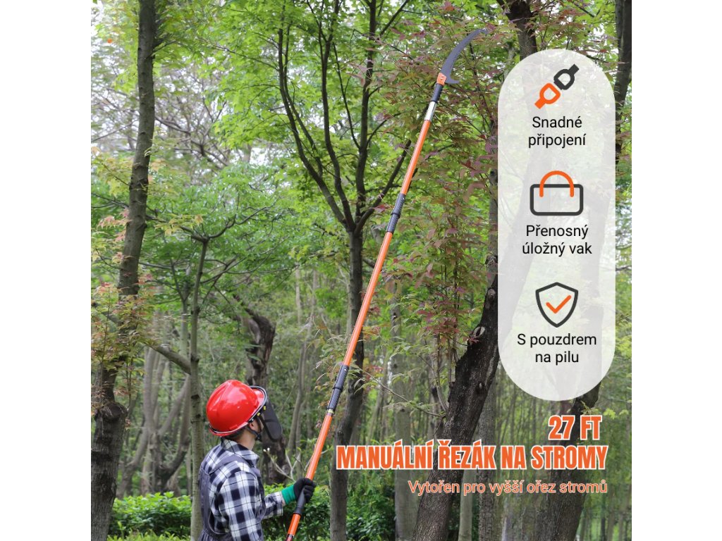 Manuální teleskopická pila na větve s nastavitelnou délkou 2,24–8,24 m a hmotností 5,1 kg je vhodná pro řezání vysokých i nízkých větví. Odolná uhlíková čepel s teflonovou úpravou a dvojitý zámkový systém zajišťují bezpečné a efektivní použití.