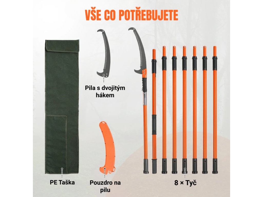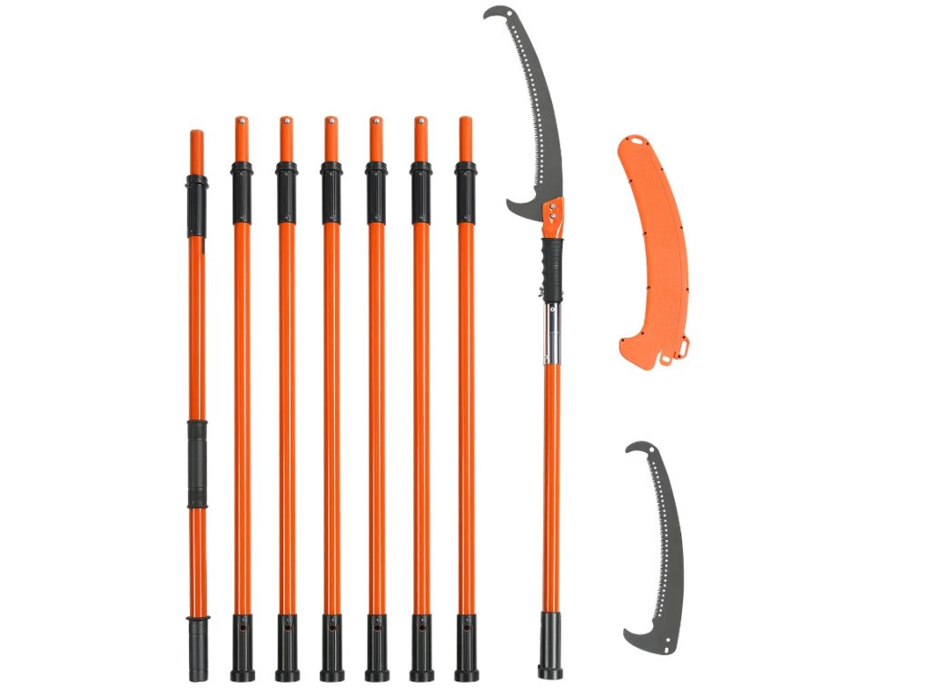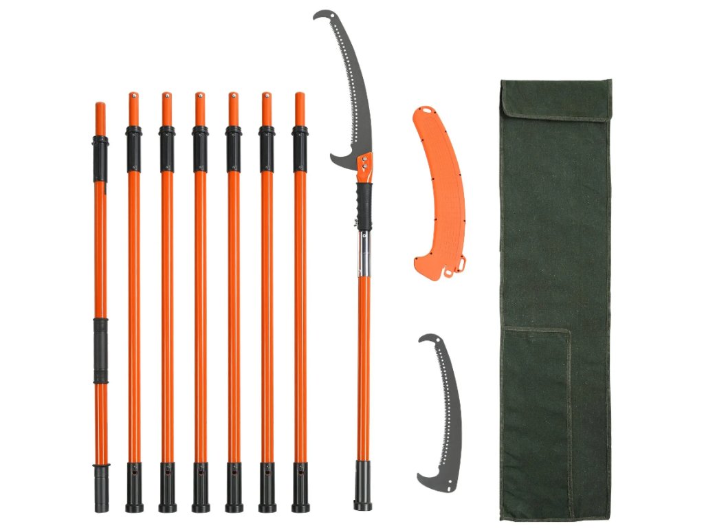 Prořezávač větví teleskopický, karbonová ocel, 2,24–8,24 m, 8 sklolaminátových rukojetí