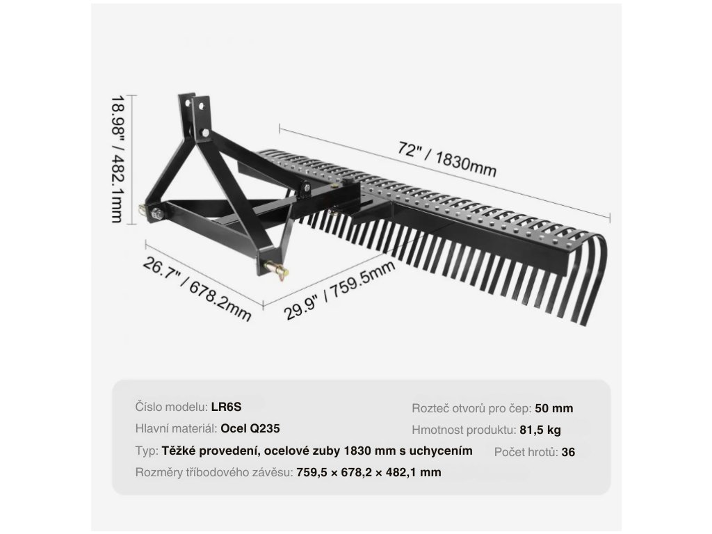 Rozměry tříbodového závěsu: | 75,9 x 67,8 x 48,2 cm |