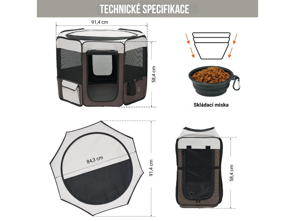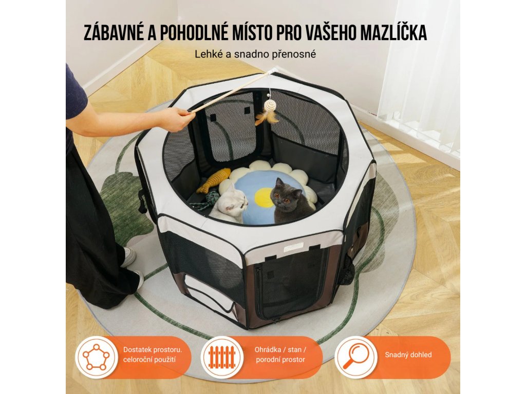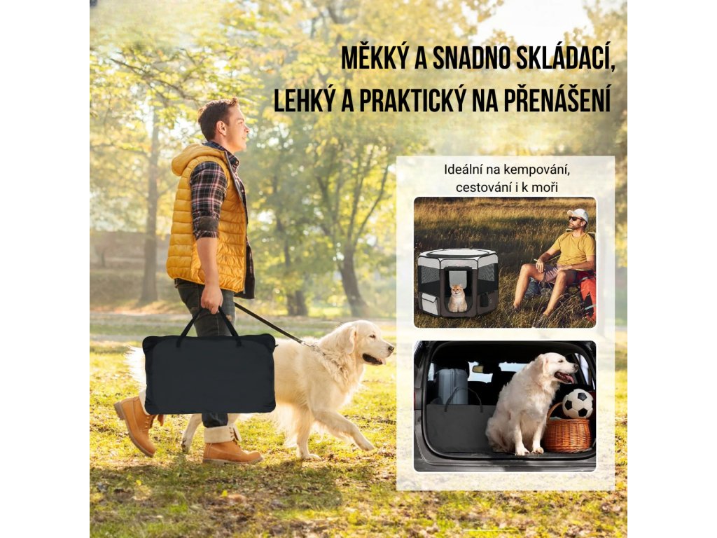 Dopřejte svým mazlíčkům bezpečný a pohodlný prostor pro pohyb a hraní doma i venku. Skládací ohrádka 91,4 × 91,4 × 58,4 cm je lehká, prostorná a snadno přenosná, ideální pro malé a střední psy či kočky. Díky prodyšným síťovaným panelům, voděodolné tkanině 600D Oxford a praktickým doplňkům nabízí komfort, bezpečí a jednoduchou údržbu každý den.