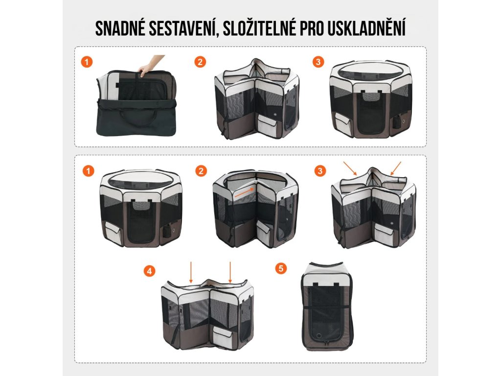 Díky použití lehké a flexibilní tkaniny je ohrádka snadno přenosná a složitelná pro úsporu místa. Vnitřní prostor je dostatečně velký, aby mohl sloužit jako porodní prostor, venkovní stan nebo izolovaná zóna. Ohrádka je k dispozici ve více velikostech, takže poskytuje vašim mazlíčkům dostatek prostoru pro hraní a odpočinek.