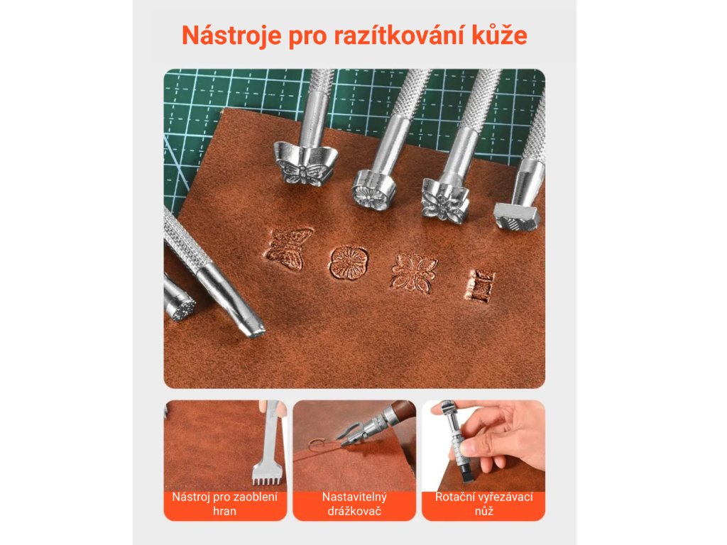 Sada nástrojů pro zpracování kůže – 59dílná sada pro ražbu, razítkování a šití