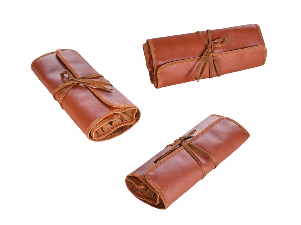 Součástí balení je odolná rolovací taška z umělé kůže, která zajišťuje přehledné a bezpečné uložení nástrojů. Elastické úchyty drží nástroje pevně na místě a brání jejich pohybu během přenášení. Díky kompaktním rozměrům lze sadu snadno skladovat nebo vzít kamkoli s sebou.