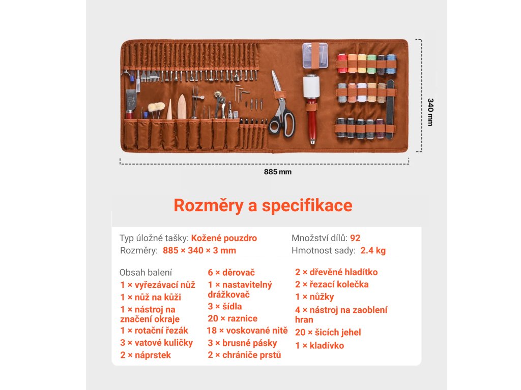 Sada nástrojů pro zpracování kůže – 92 dílná sada pro ražbu, razítkování a šití