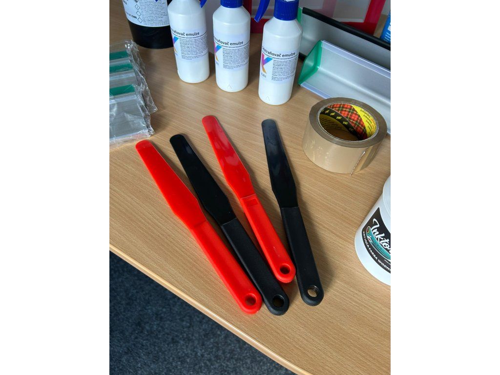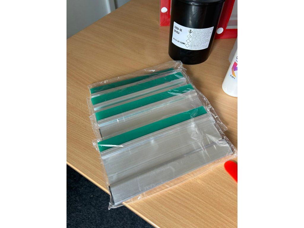 - 4x tiskařská stěrka 20 cm: Hliníkový úchop s polyuretanovým břitem 75 ShA.