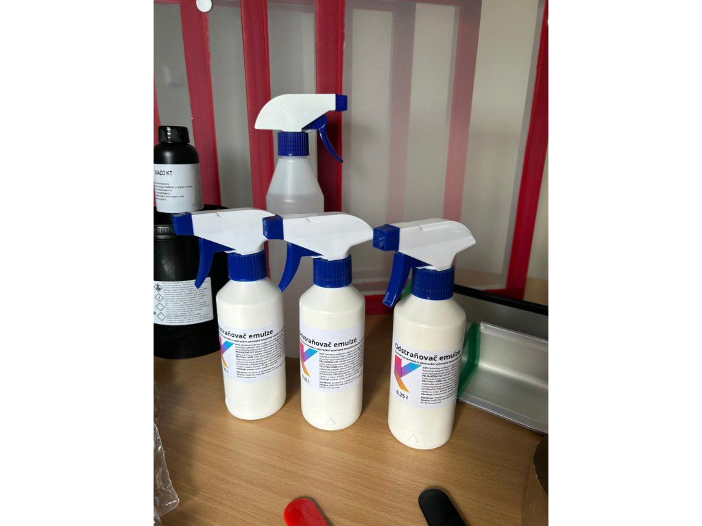 - Regenerační a přípravná chemie: Odstraňovač emulze (3x 250 ml) a odmašťovač sít (500 ml).