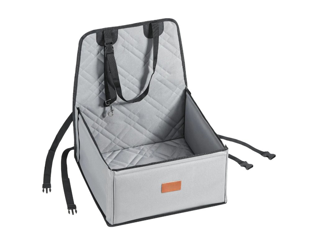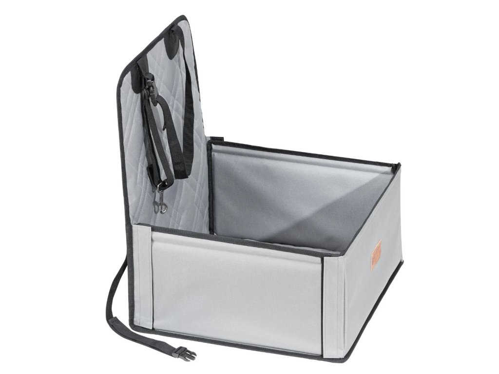 Autosedačka pro psy do 12 kg poskytuje bezpečnou a pohodlnou jízdu. Díky pevné konstrukci z plastových desek a sklolaminátových tyčí s výplní z perlové bavlny drží tvar a zajišťuje stabilitu.