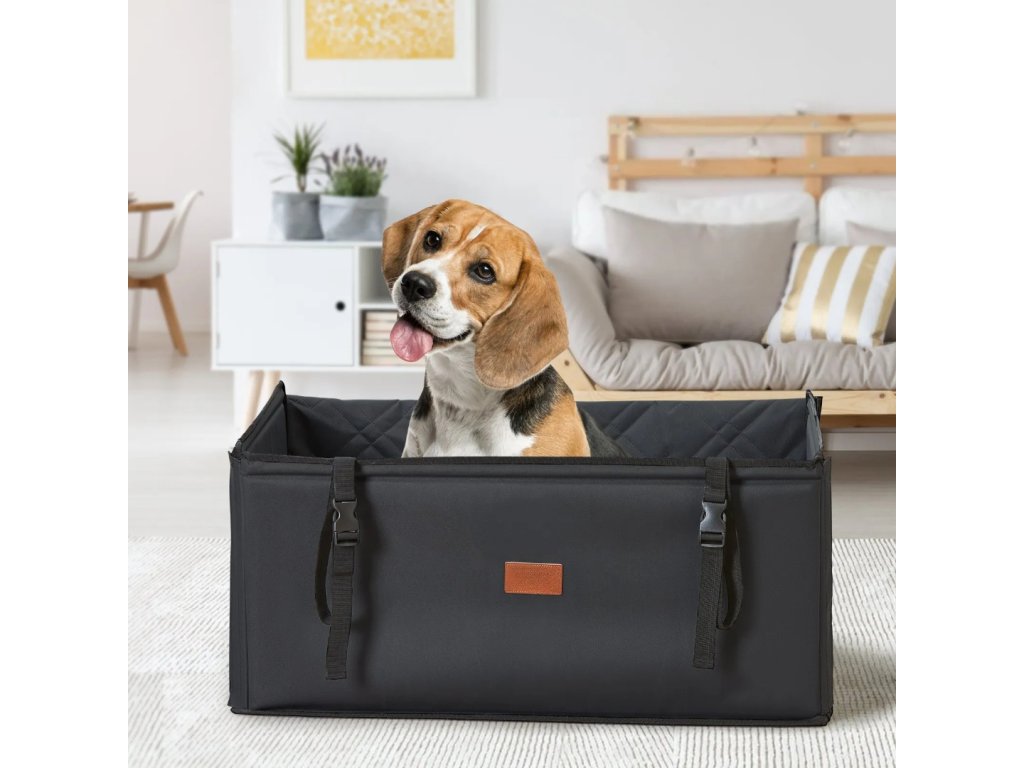 Autosedačka pro psa je navržena s důrazem na stabilitu a ochranu zvířete během jízdy. Plně uzavřená konstrukce s výztužnými deskami a sklolaminátovými tyčemi zajišťuje pevný tvar sedačky a minimalizuje její deformaci při brzdění nebo zatáčení. Díky tomu poskytuje psovi oporu a pocit jistoty, což pomáhá snižovat stres a cestovní neklid. Vysoká zadní opěrka navíc chrání psa při náhlém zastavení a zároveň funguje jako bariéra proti znečištění interiéru vozidla.