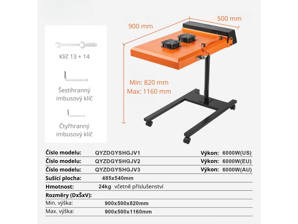 Tato výkonná sítotisková sušička je dokonalým nástrojem pro profesionální i amatérské tiskaře. Kombinuje vysoký výkon, precizní ovládání a snadné přizpůsobení, což z ní činí ideální zařízení pro sušení sítotiskových aplikací, zejména na textilie.