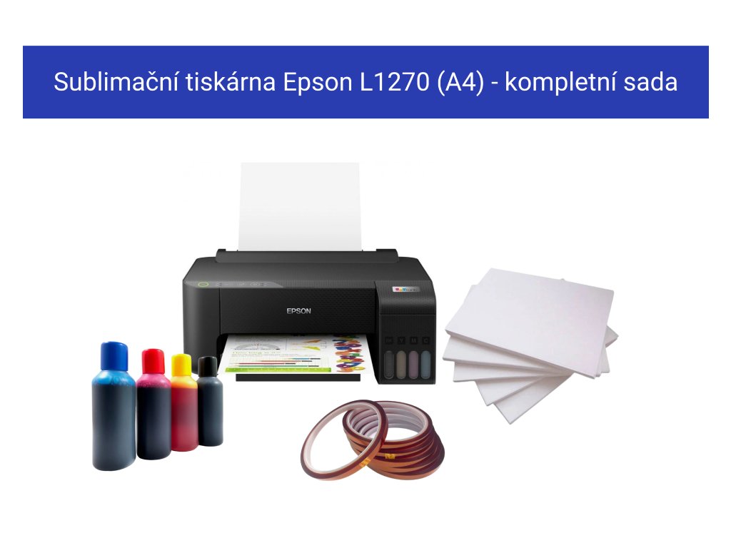 - Sublimační tiskárna Epson L1270 (A4) – vybavená systémem Ecotank pro snadné plnění sublimačními inkousty CMYK (4×100 ml) a kompatibilní se sublimačním papírem Premium (100 archů). Tiskárna umožňuje vysokou kvalitu tisku, která se vyrovná několikanásobně dražším zařízením. Součástí balení jsou i ochranné rukavice a instalační materiál.