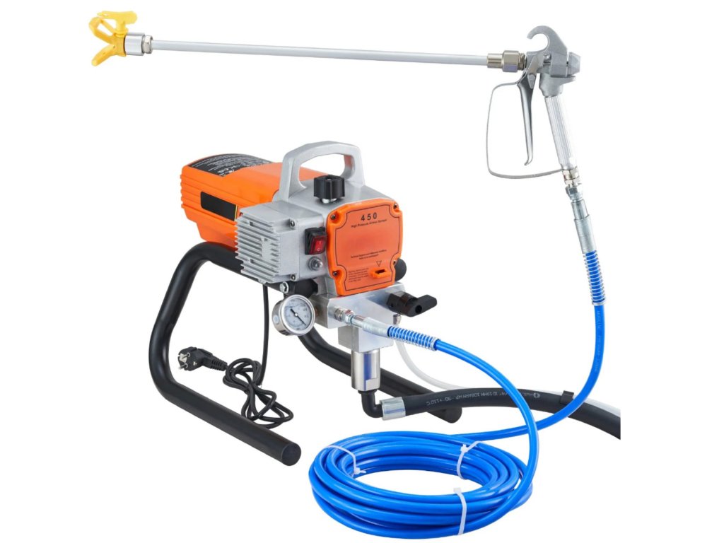 Stříkací zařízení Airless s výkonem 1800 W, průtokem 1,8 l/min a tlakem až 3000 psi je ideální pro rychlé a rovnoměrné nanášení barev na větší plochy. Díky 9 m vysokotlaké hadici a 0,5 m prodloužení umožňuje pohodlnou práci i na hůře dostupných místech. Odolná kovová pistole a snadné čištění zaručují dlouhou životnost a spolehlivý provoz.