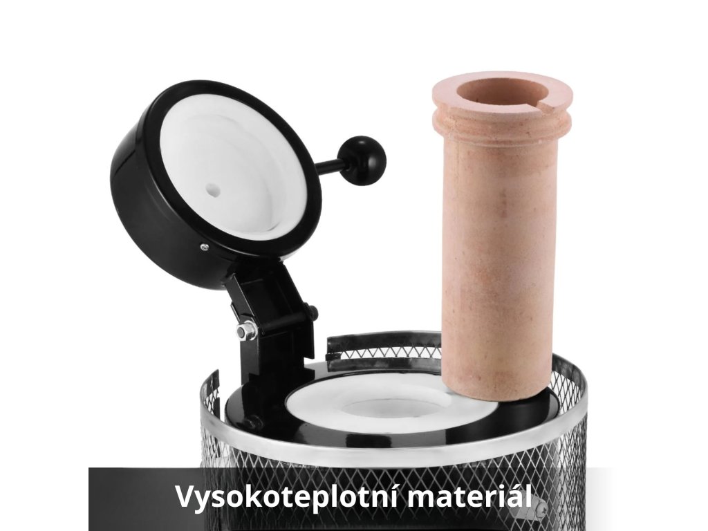 Izolační mřížky eliminují nechtěný kontakt s ohřívací komorou, což zvyšuje bezpečnost používání. Kelímek je opatřen tavnou svorkou, která se bezpečně přichytí k drážce kolem hlavy kelímku, což zajišťuje bezpečnou manipulaci.