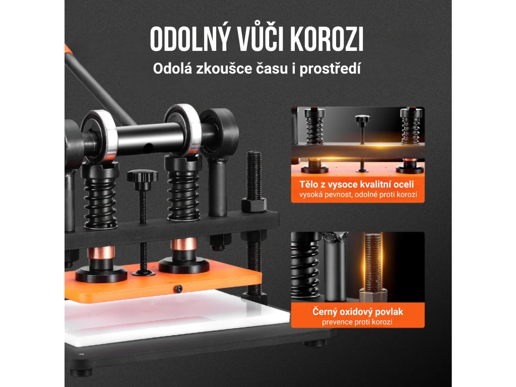 Výsekový lis na kůži, tlak 1,5 t, pracovní plocha 26 × 15 cm, ocelová konstrukce