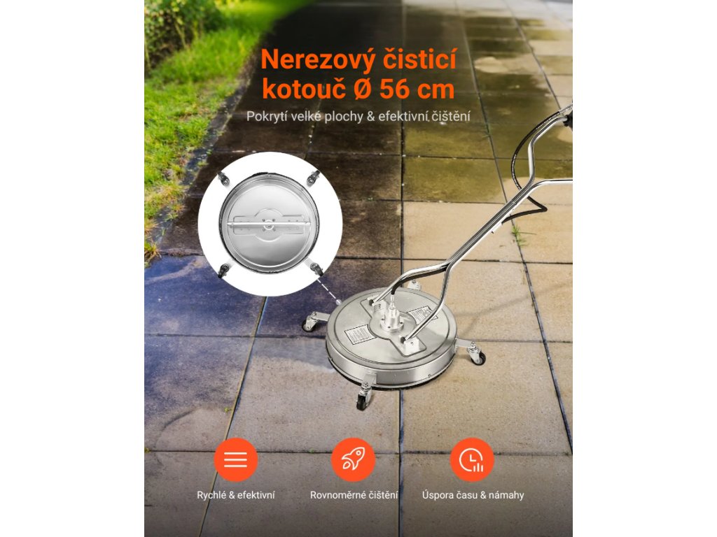 Vysokotlaký čistič ploch, průměr 558 mm, max. 310 bar, nerez, 4 kolečka