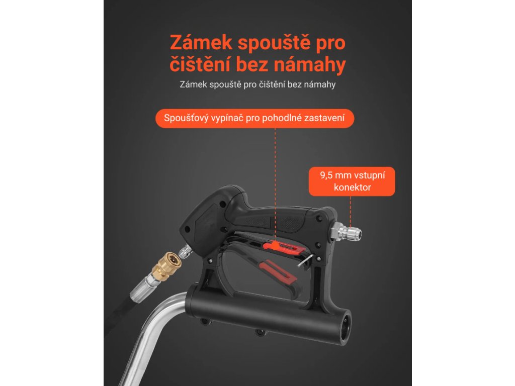 Díky standardní 9,5 mm rychlospojce a dodávanému 6,3 mm adaptér kitu lze zařízení snadno připojit. Stačí stisknout tlačítko a čištění může okamžitě začít – není potřeba dlouhého držení spouště.