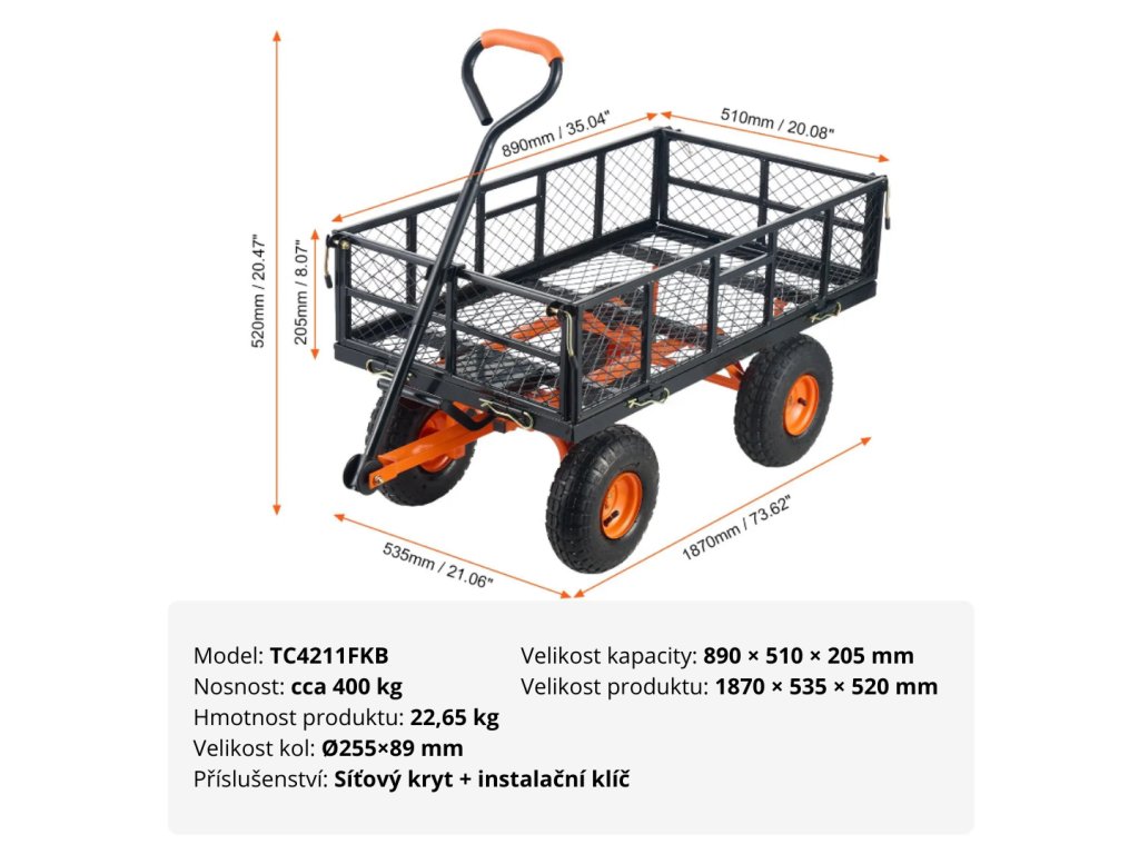 Zahradní vozík 890×510×205 mm, nosnost 400 kg