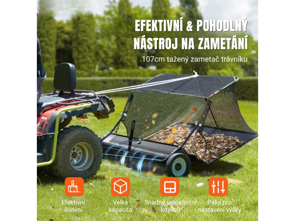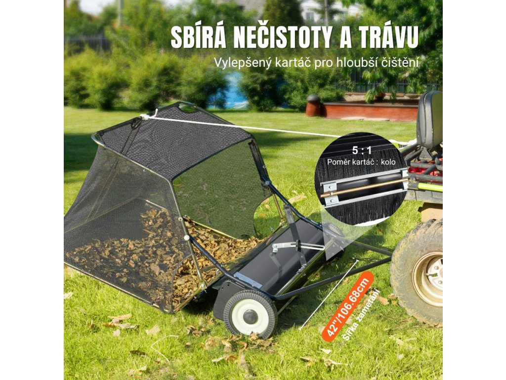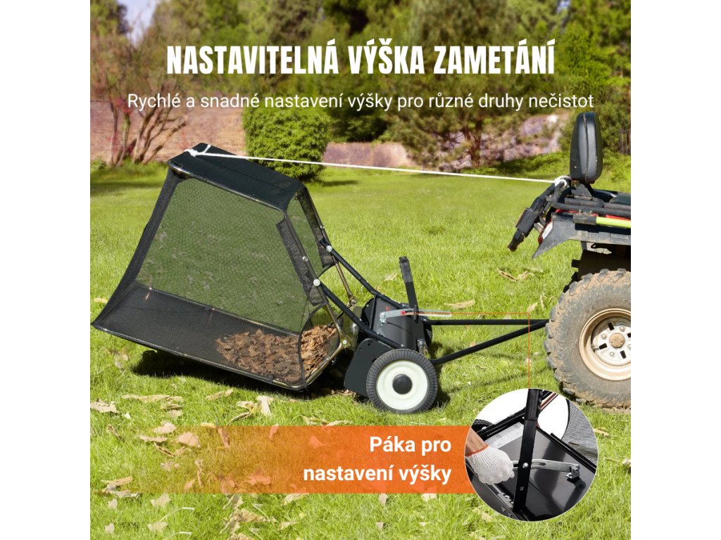 Zametač listí za zahradní traktor a čtyřkolku, tažený, záběr 106,6 cm, nastavitelná výška