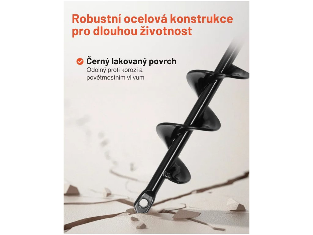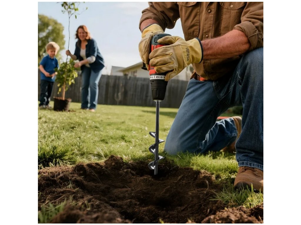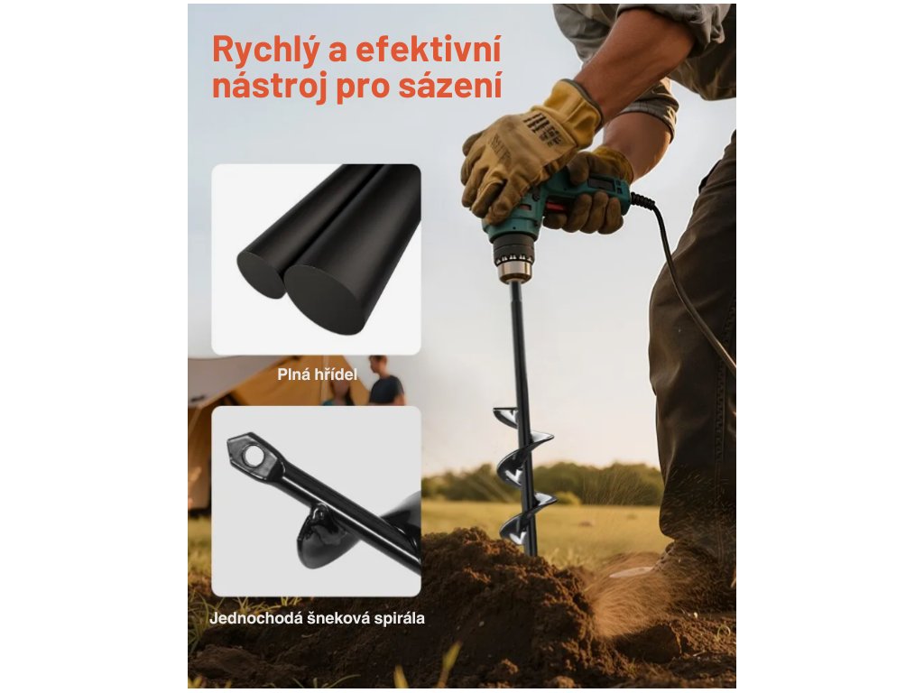 Díky šnekové konstrukci a ostré spirále se vrták hladce zařezává do půdy a s pomocí vrtačky vytvoří otvor rychleji než při klasickém kopání. Hodí se pro měkké až středně tvrdé zahradní půdy.