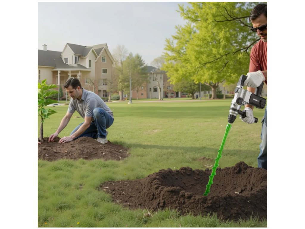 Vrták je vhodný nejen pro sázení, ale i pro vrtání děr pod plotové kolíky, stany či venkovní dekorace, což jej činí univerzálním pomocníkem pro zahradnické i hobby projekty.