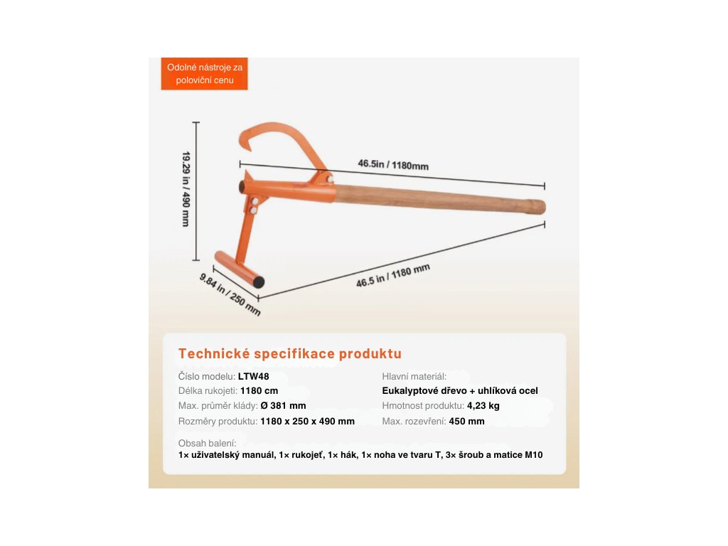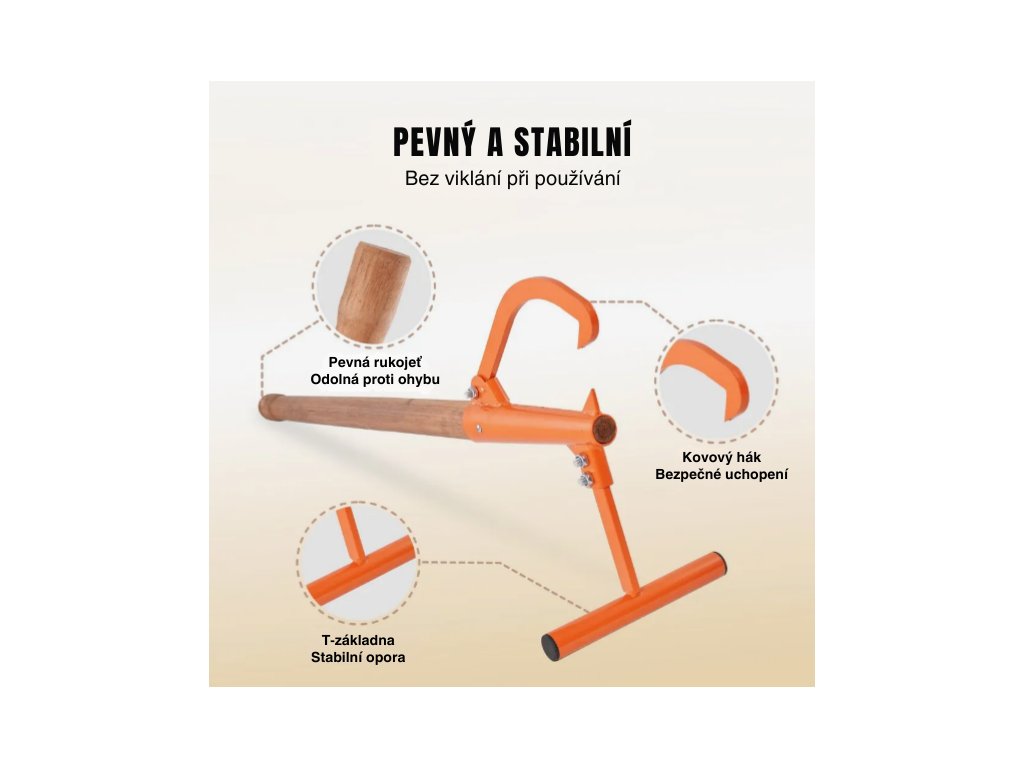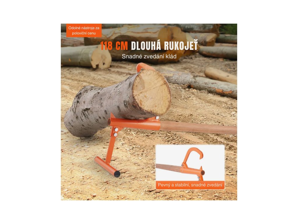 Dlouhá dřevěná rukojeť s tvarovaným profilem usnadňuje manipulaci s kmeny a pomáhá rozložit sílu při zvedání. Díky dobré ergonomii se snižuje námaha při práci a nástroj se pohodlně drží i při delším používání.