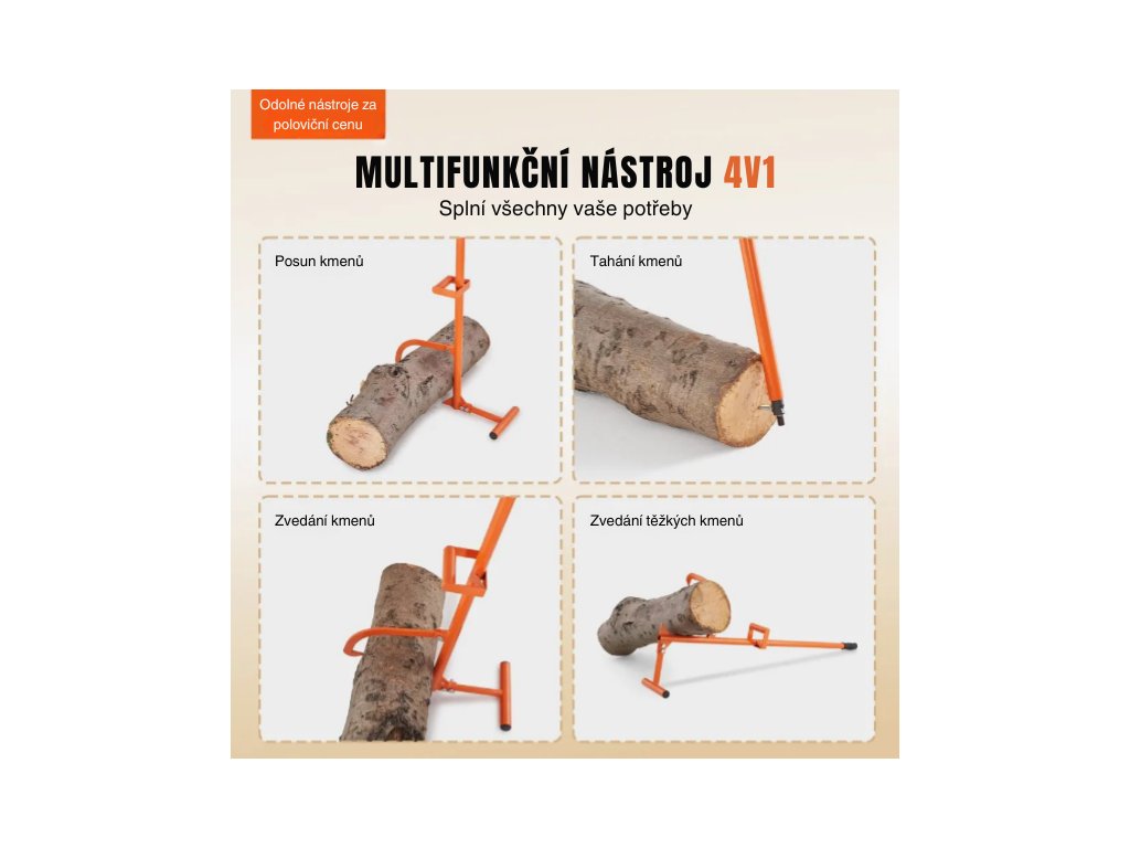 Tento nástroj nabízí široké možnosti využití díky čtyřem různým funkcím – umožňuje snadné zvedání, přetáčení, tahání i manipulaci s kmeny. Je ideální při práci se dřevem, kde je potřeba pohybovat s těžkými kusy bez pomoci techniky.